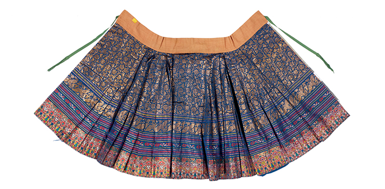 蓝色缠枝四季花卉纹织金妆花缎马面裙 明 长88厘米 腰围104厘米 山东博物馆藏(图片由清华大学美术学院提供)