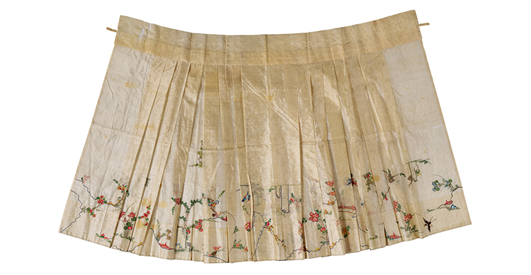 白色暗花纱绣花鸟纹马面裙 明 长88厘米 腰宽60厘米 山东博物馆藏 (图片由清华大学美术学院提供)