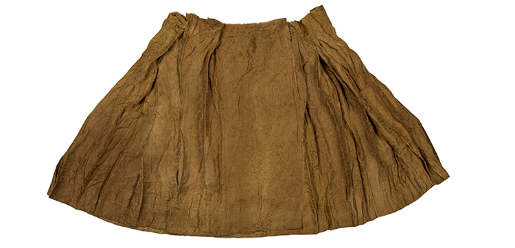 黄褐色绸地织灵芝竹叶纹马面裙  明  长83厘米 宽123厘米  上饶市博物馆藏  2016年江西省上饶市广信区白岭明墓出土