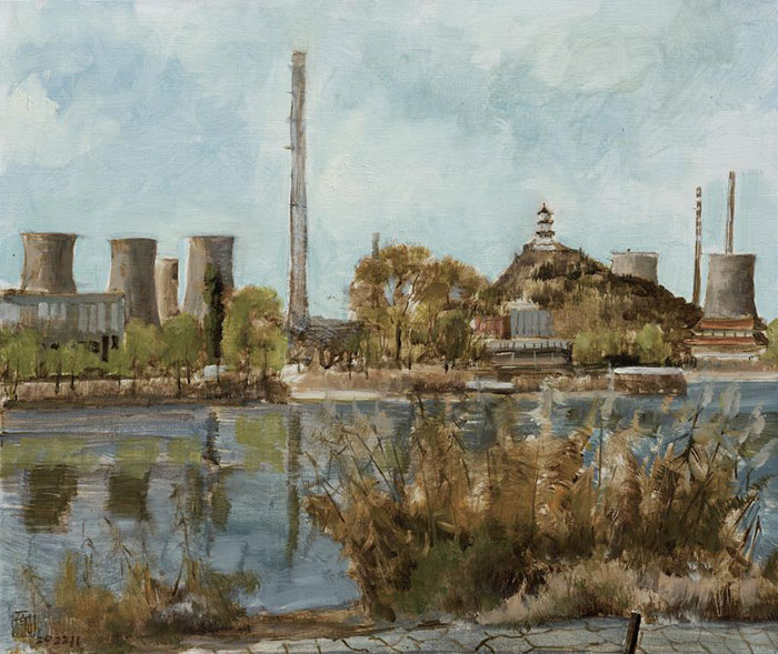 《秋日首钢园》 布上油画 50×60(cm) 2022 年