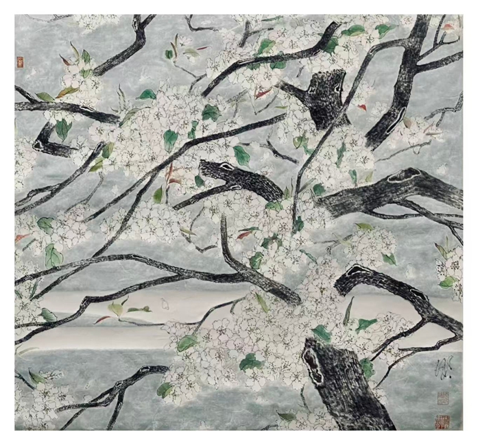梨花春 陈福彬 93×93cm纸本设色 2025年