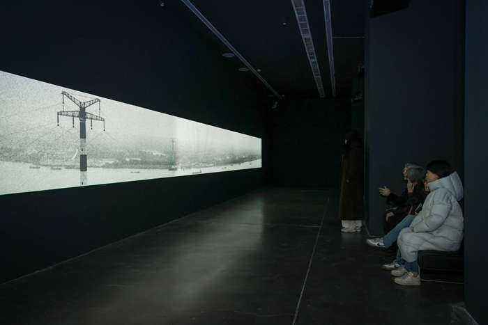 与此同时,艺术家于2016年创作的记录完整手卷的影像在展厅一侧循环播放,总时长达5小时40分钟。在开幕式上,秋麦鼓励观众们坐在影像展厅的长椅上,花点时间,静静观看由左向右缓缓流动的手卷图像,沉浸在与风景长卷的独处中,在影像的对照中参见自我内心的涟漪。