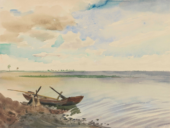 周令钊 白洋淀边小三舱 1956 24.8×33cm 纸本水彩 中央美术学院美术馆藏