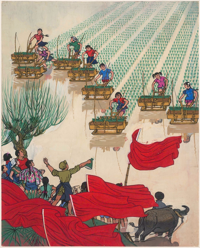 周令钊 1961年《插秧比赛》(韶山) 72.5×58cm 纸本·水粉 中央美术学院美术馆藏