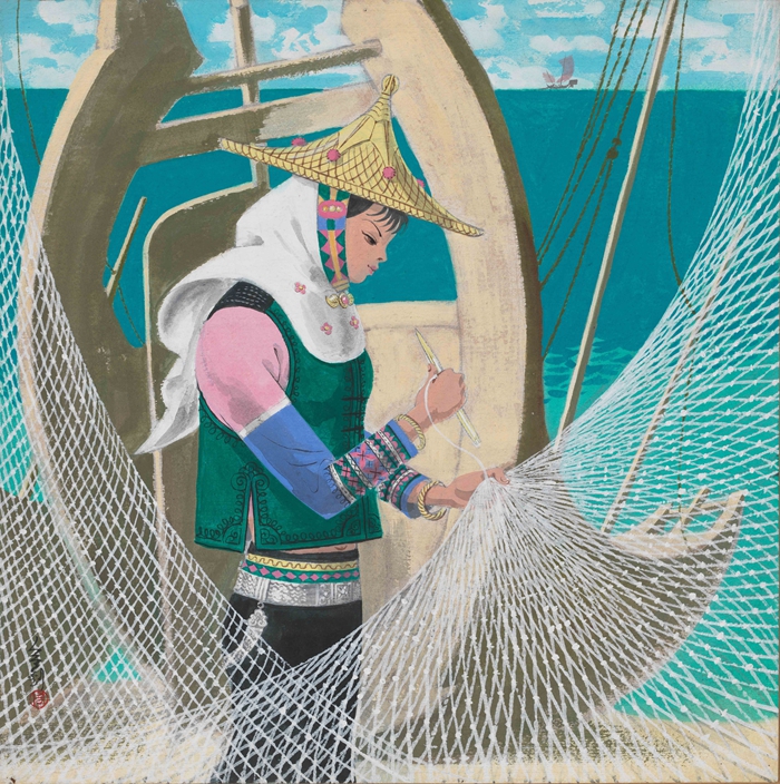 周令钊 织网(惠安组画) 1984 45×44.1cm 纸本 中央美术学院美术馆藏