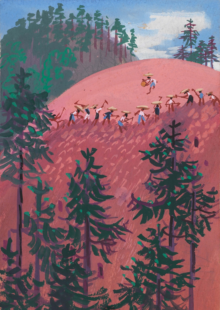 周令钊 红山造林(创作小稿) 1963 18.7×13cm 纸本粉彩 中央美术学院美术馆藏