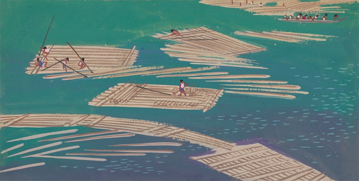 周令钊 放排 1963 13.6×27cm 纸本粉彩 中央美术学院美术馆藏