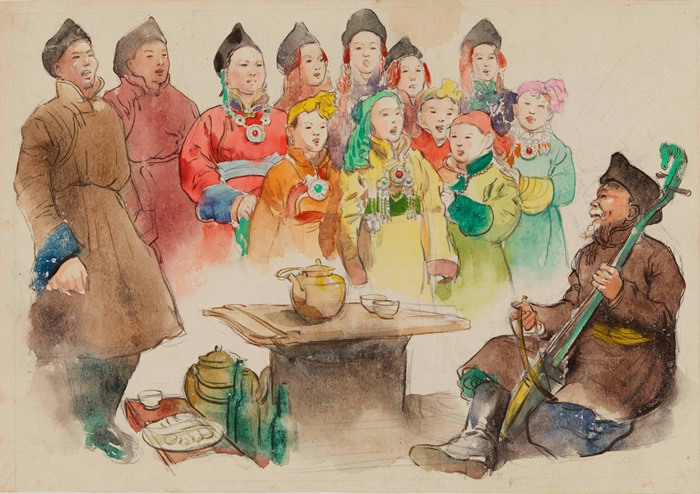 马头琴响歌声飞 1956 23.1×33cm 纸本水彩 中央美术学院美术馆藏