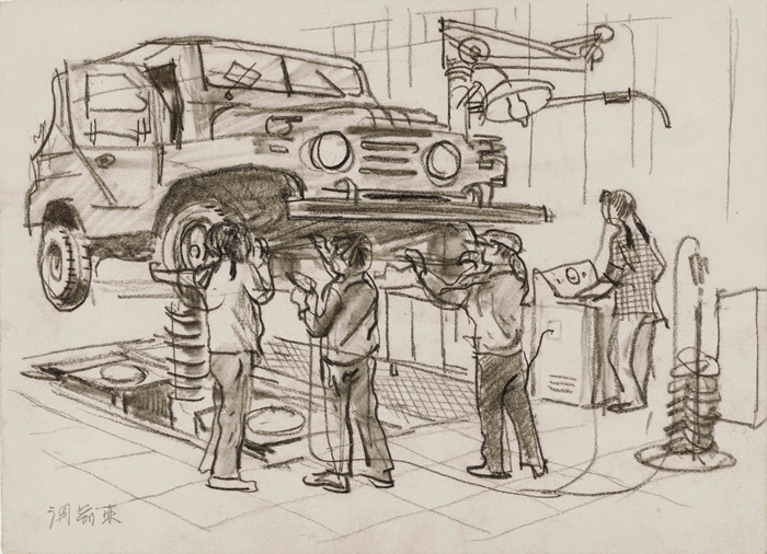 周令钊 北汽(五)1970 19.7×27.1cm 纸本炭笔 中央美术学院美术馆藏