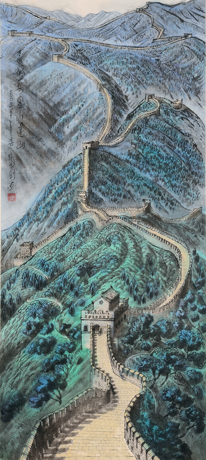 周令钊 长城万里山连山 2003 152×67cm 纸本彩墨 中央美术学院美术馆藏