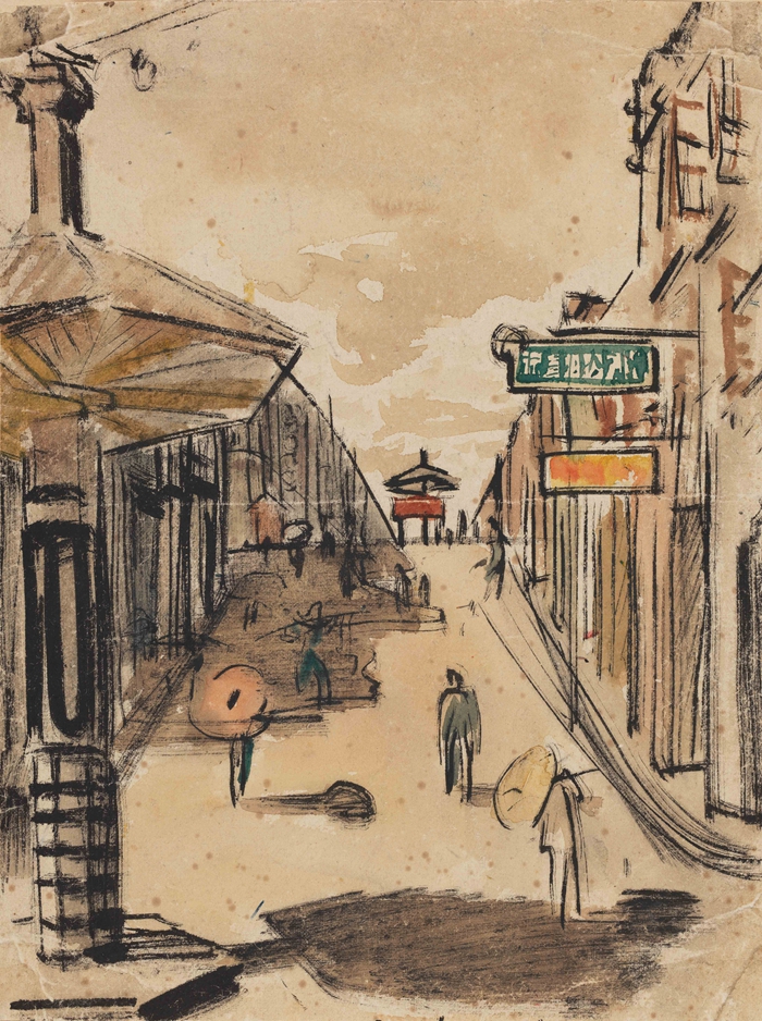 周令钊 柳州街头1942 26.5×19.5cm 纸本水彩 中央美术学院美术馆藏