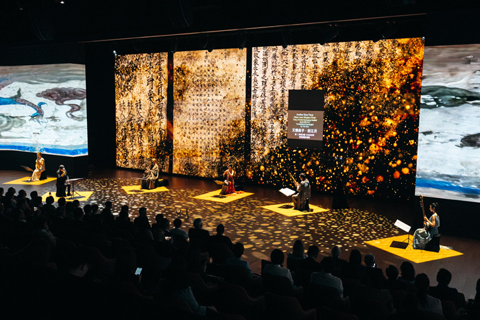 《消失的藏经洞》以“活态博物馆”为概念,由联合国教科文组织全球亲善大使、国际知名作曲家及指挥家谭盾亲自指挥,携手敦煌古乐团演奏多首唐代古曲,包括《长沙女引》《如意娘》《箜篌引》等,并使用反弹葫芦琵琶、唐笙、尺八、奚琴、筚篥、五弦琵琶、凤首箜篌等由敦煌壁画复原的古乐器,结合多媒体视觉与AI技术,打造身临其境的敦煌莫高窟体验;在这场融合历史深度、艺术高度与匠心温度的文化盛宴中,让观众聆听千年前藏经洞的灵魂回响,感受超越艺术表演的文明传承力量。