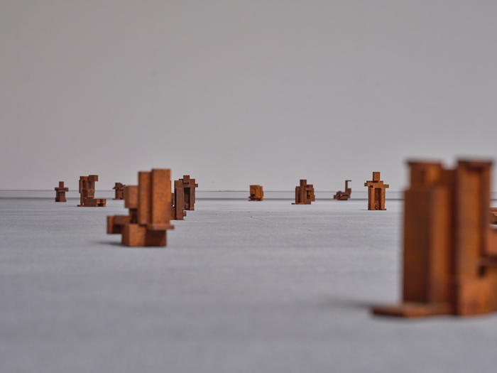 展览的核心线索之一,在于对身体、空间与存在本质的哲学叩问。英国艺术家安东尼·葛姆雷(Antony Gormley)以抽象化的人体雕塑探索着肉身在宇宙尺度下的坐标,他的作品与中国艺术家例如王鲁炎充满理性思辨的镜像装置隔空形成了深邃的对话——二者分别从有机与无机、感知与逻辑的两极,逼近关于人类存在与时空关系的形而上学思考。