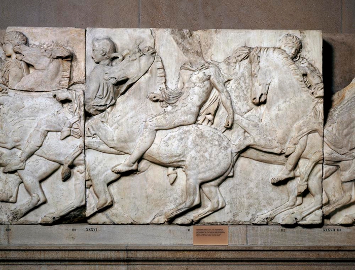 希腊帕特农神庙浮雕带上的战士与马 (图片来源:大英博物馆)