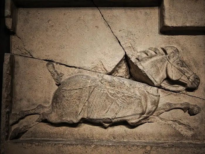 六骏石刻在近代遭受劫难,其中飒露紫和拳毛騧两骏于1914年被盗卖至海外,现藏于美国宾夕法尼亚大学博物馆。其余四骏也被打碎企图盗运,幸被截获,但已破损。现存西安碑林博物馆的四骏,身上仍可见清晰的断裂痕迹似乎更悲壮地讲述了它们的勇气、忠诚与牺牲。