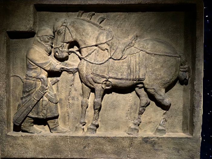唐代是中国画马的黄金时代。国力强盛、文治武功,鞍马甚至成为单独的一门画科。要谈论这一时期,首推自然是“昭陵六骏”。“昭陵六骏”是唐太宗李世民为纪念在建立唐朝过程中陪伴他出生入死的六匹战马,而令阎立本起稿、阎立德雕刻并置于陵墓的六块浮雕。